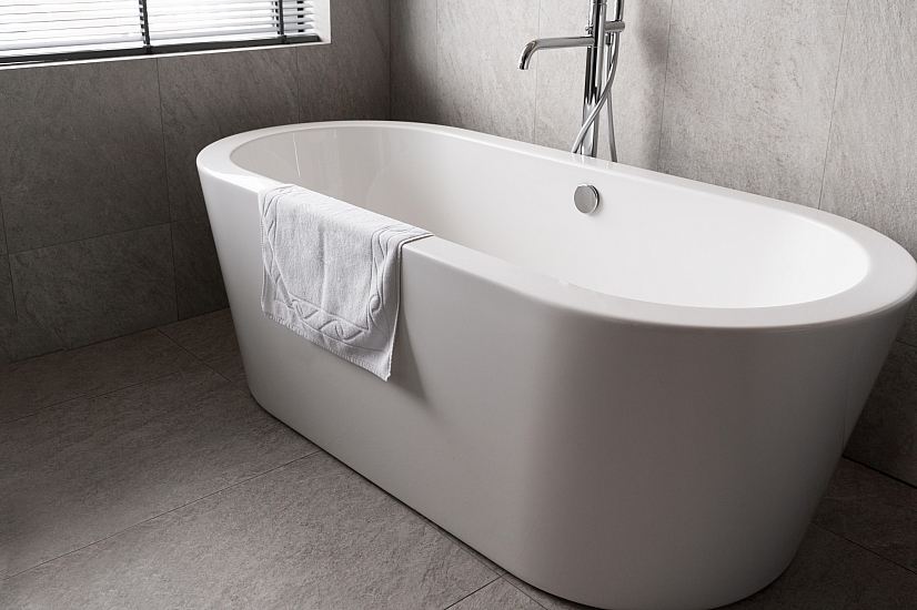 Если ванна является отдельно стоящей и не примыкает плотно к стенам, то класть ли плитку за ванной — вопрос дискуссионный, так как эти поверхности будут доступны для регулярной уборки и проветривания. Однако пол все же рекомендуется облицовывать для облегчения ухода и поддержания гигиены.