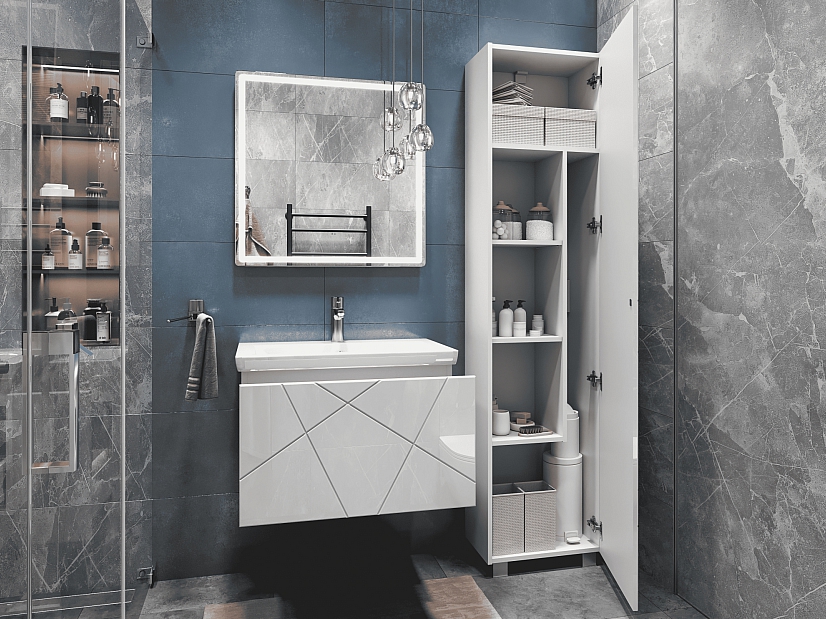 Если позволяет площадь, шкаф в ванную для хранения — это лучшее решение. Полотенца, халаты, запасы косметики и бытовой химии — все это надежно скроют дверцы. Для ванн, ограниченных в квадратных метрах, подойдет вариант шкафа-пенала. Модель Geometry занимает немного места, но вмещает на своих полках все необходимое. Высокие шкафы — еще и вариант безопасного хранения бытовой химии, аптечки и других предметов, доступ к которым нужно ограничить для детей.