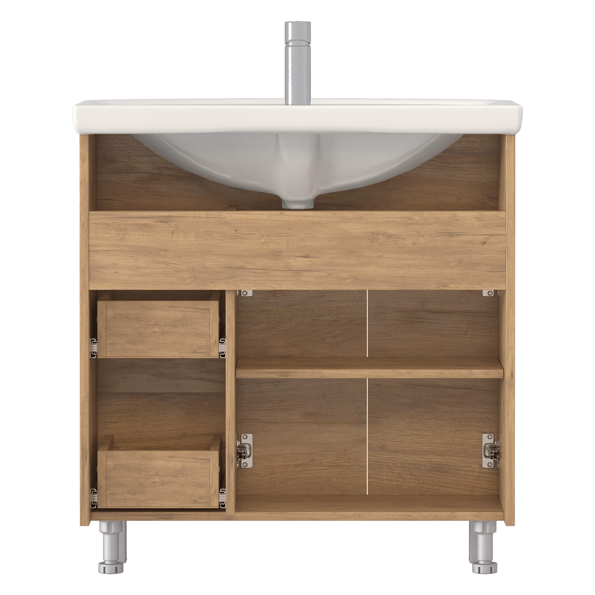 Оснащение: 2 ящика, направляющие шариковые полного выдвижения, петли с механизмом плавного закрывания, 1 полка ЛДСП, 2 опоры квадратные регулируемые, 2 опоры кухонные