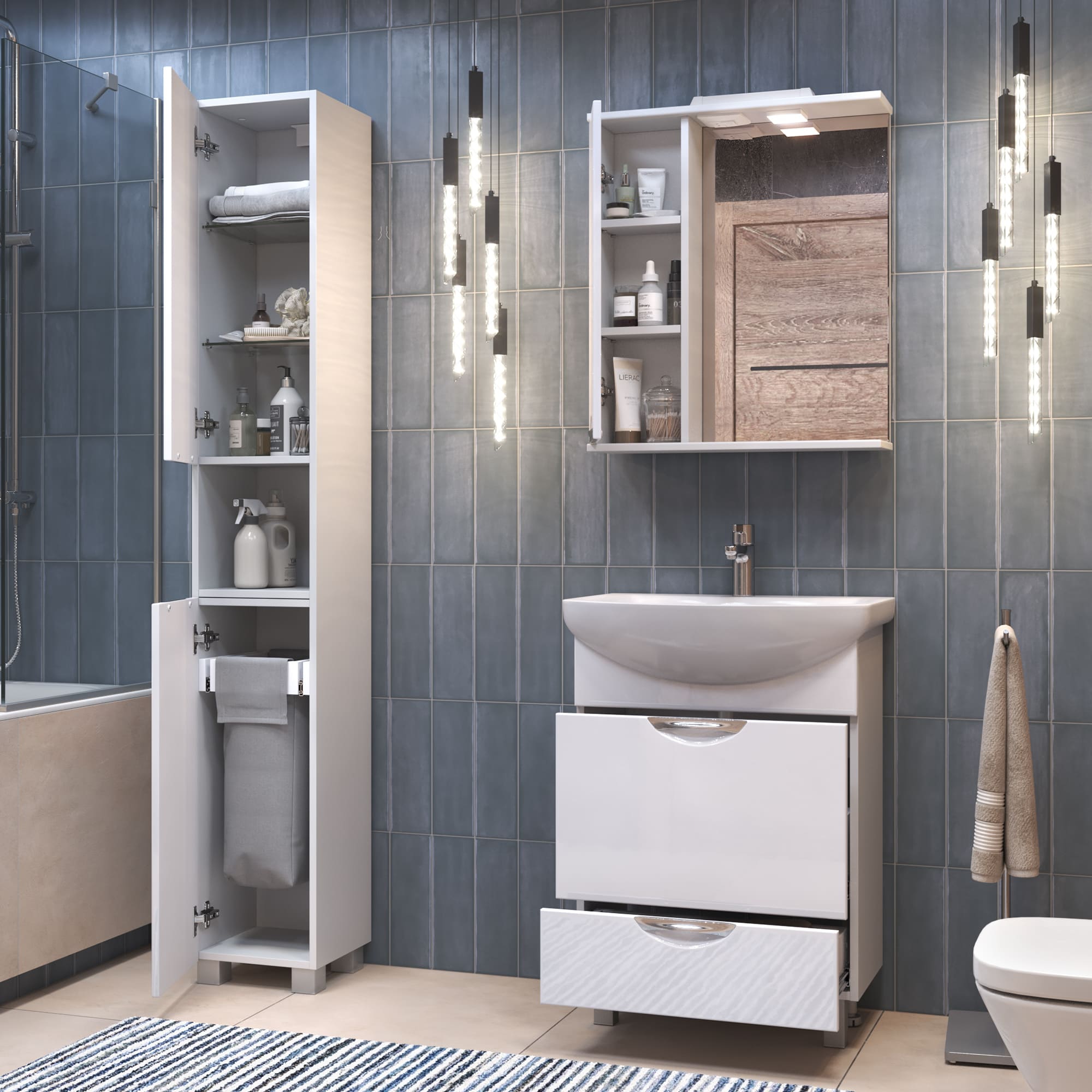 Коллекция Каллао - универсальное решение для ванной комнаты. Изготовлена из высококачественных влагостойких материалов, гарантирующих долговечность и надежность. Высокий глянец придает тумбе элегантный и современный вид. Тумбы с ящиками комплектуются встроенными сифонами, при этом сохраняя максимум полезного места.