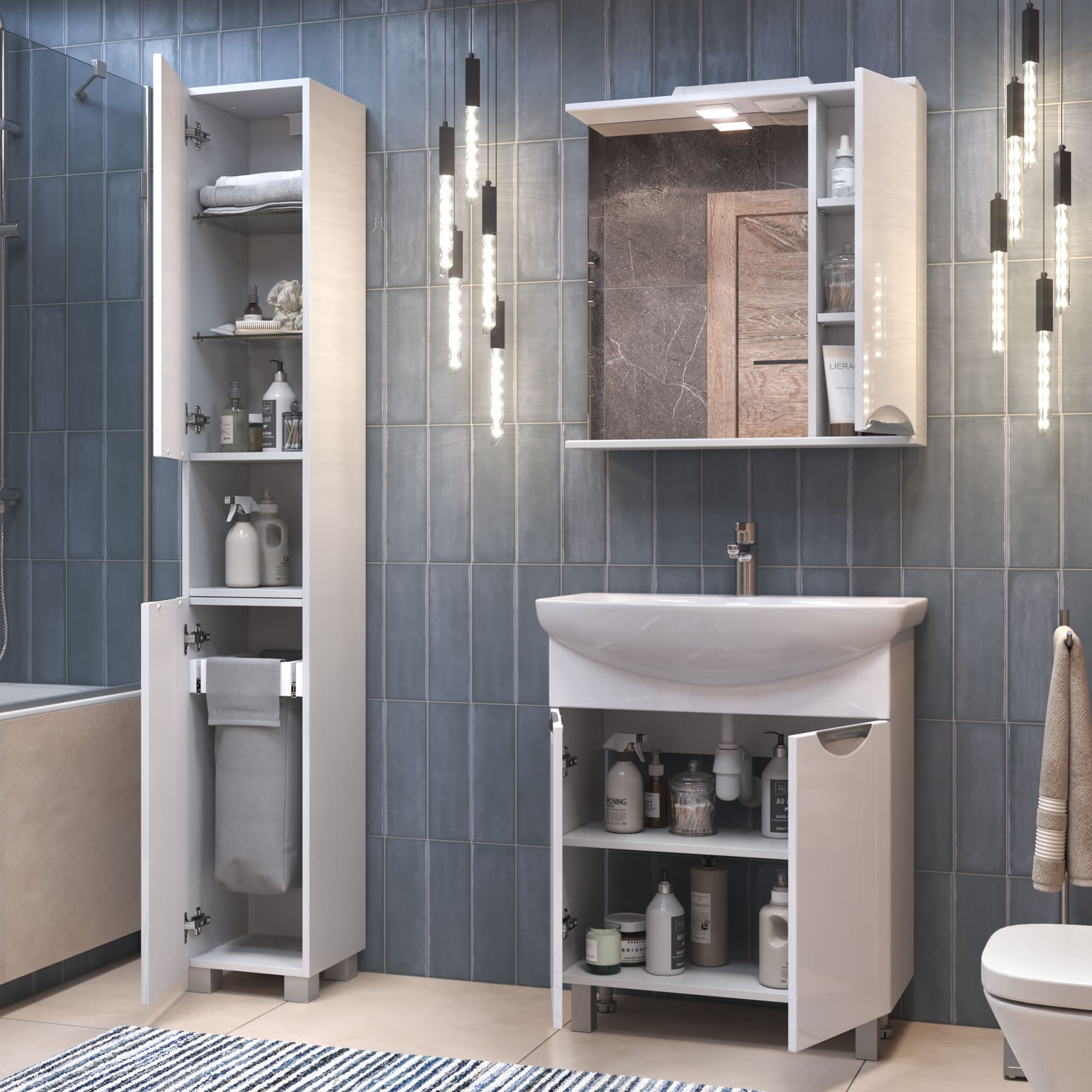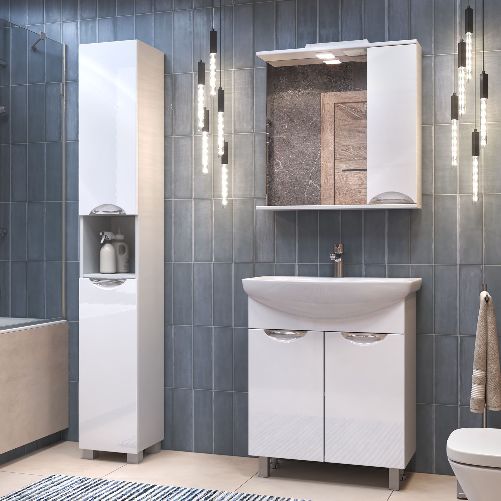 Коллекция Каллао - универсальное решение для ванной комнаты. Изготовлена из высококачественных влагостойких материалов, гарантирующих долговечность и надежность. Высокий глянец придает тумбе элегантный и современный вид.