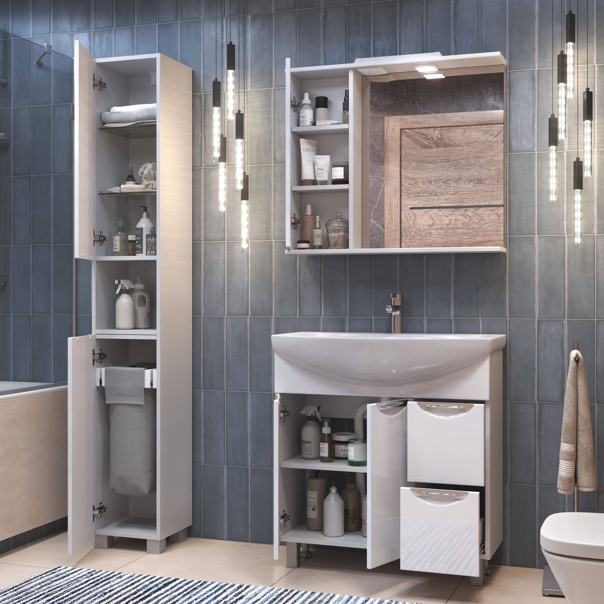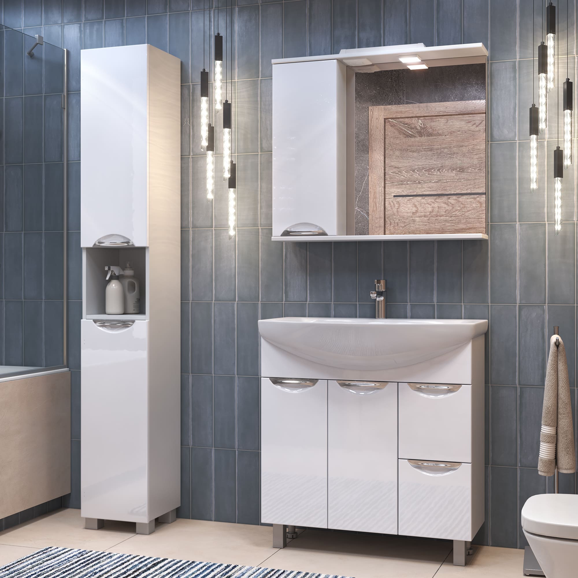Коллекция Каллао - универсальное решение для ванной комнаты. Изготовлена из высококачественных влагостойких материалов, гарантирующих долговечность и надежность. Высокий глянец придает тумбе элегантный и современный вид.