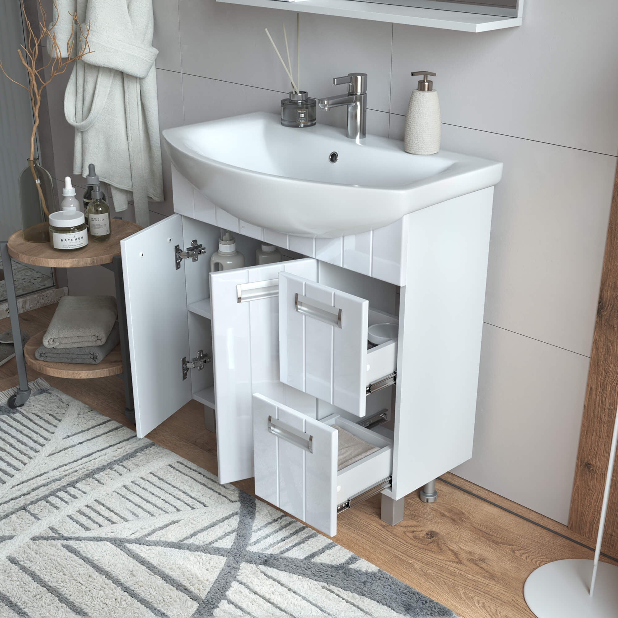 Коллекция Diana - универсальное решение для ванной комнаты. Изготовлена из высококачественных влагостойких материалов, гарантирующих долговечность и надежность. Высокий глянец придает тумбе элегантный и современный вид. Тумбы с ящиками комплектуются встроенными сифонами, при этом сохраняя максимум полезного места.