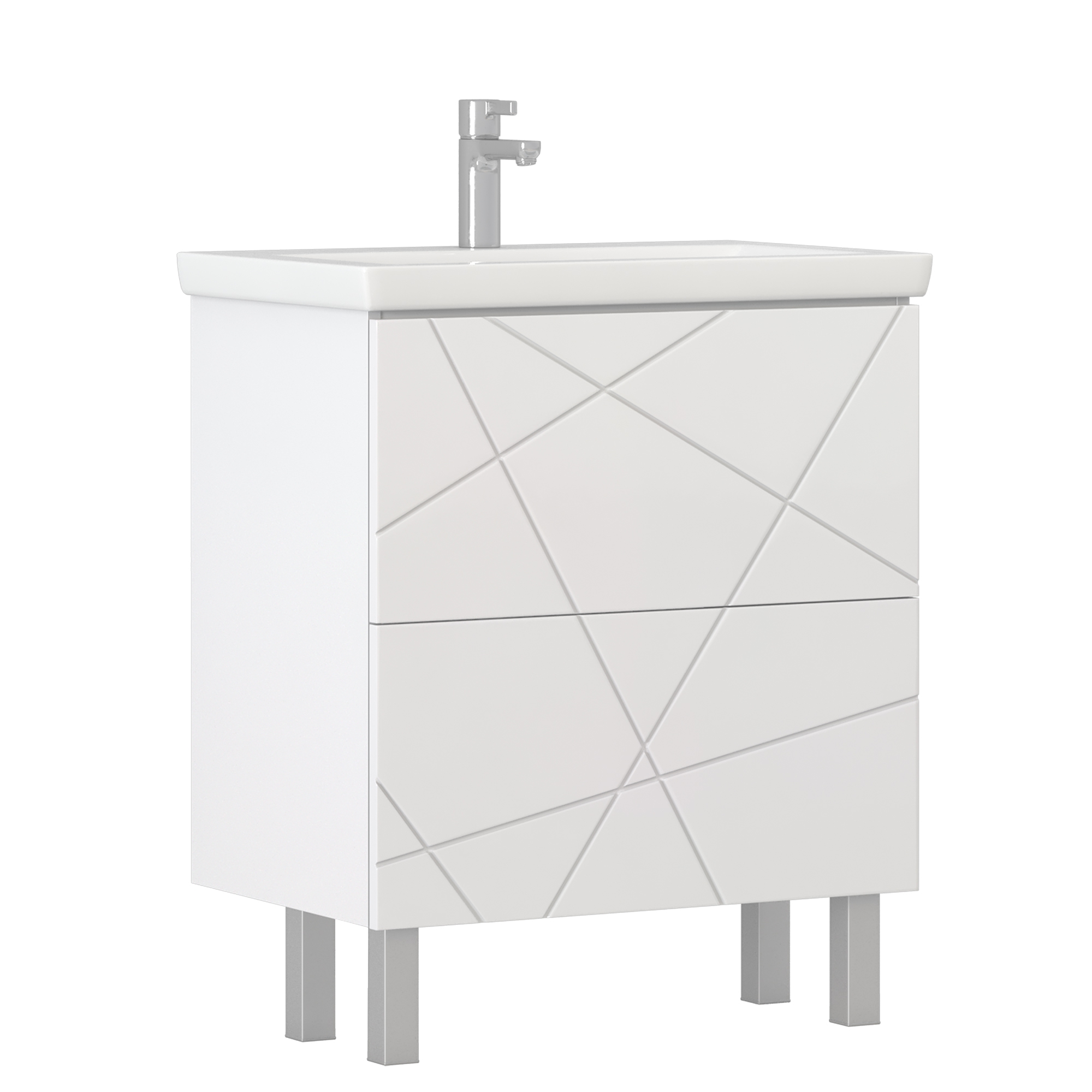 Оснащение: 2 выдвижных ящика, направляющие скрытого монтажа, нажимной механизм открывания, 2 навеса, 4 опоры квадратные регулируемые
