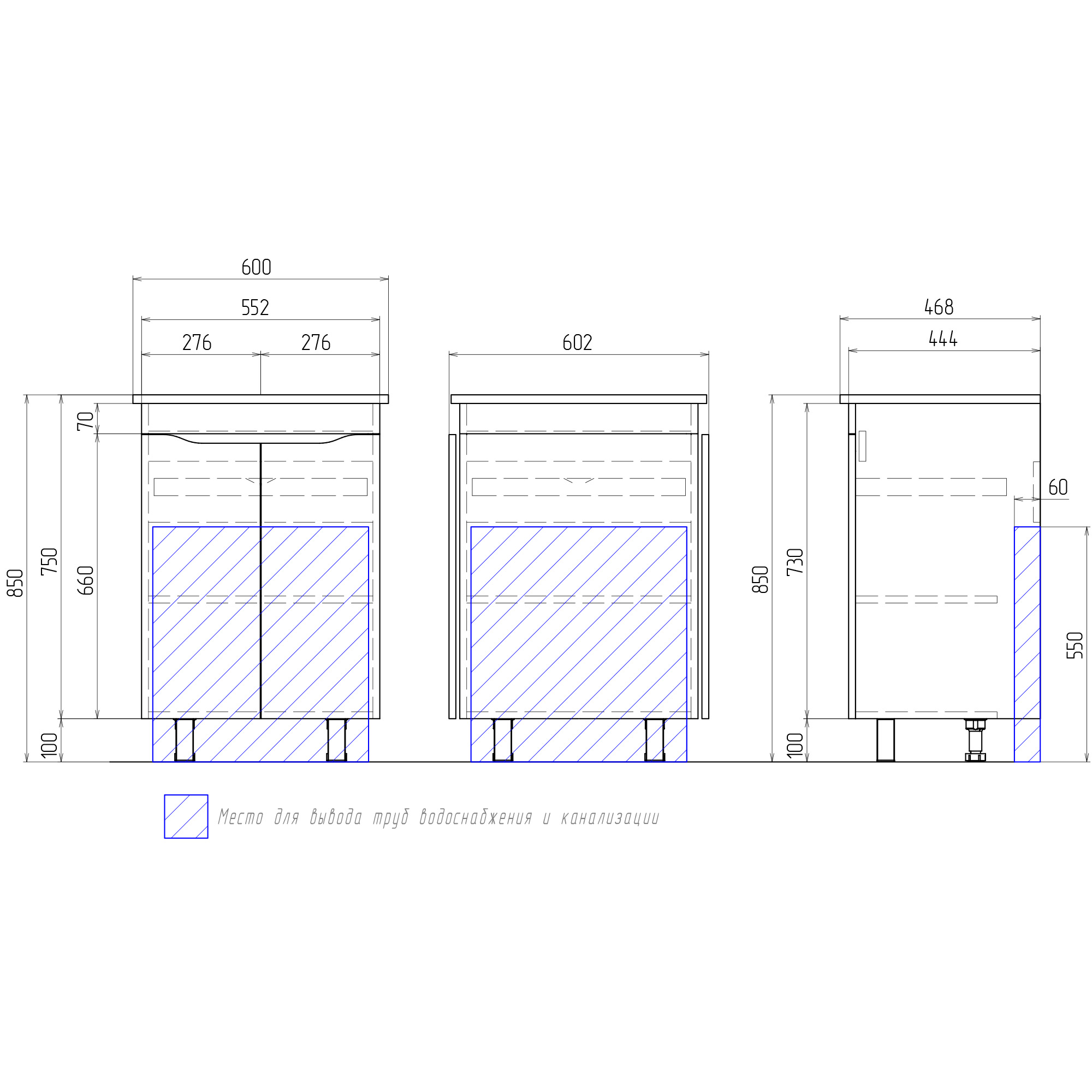 Оснащение: 2 дверцы, петли с механизмом доводчика, выдвижной органайзер для мелочей, шариковые направляющие полного выдвижения, 2 опоры квадратные регулируемые; 2 кухонные опоры
