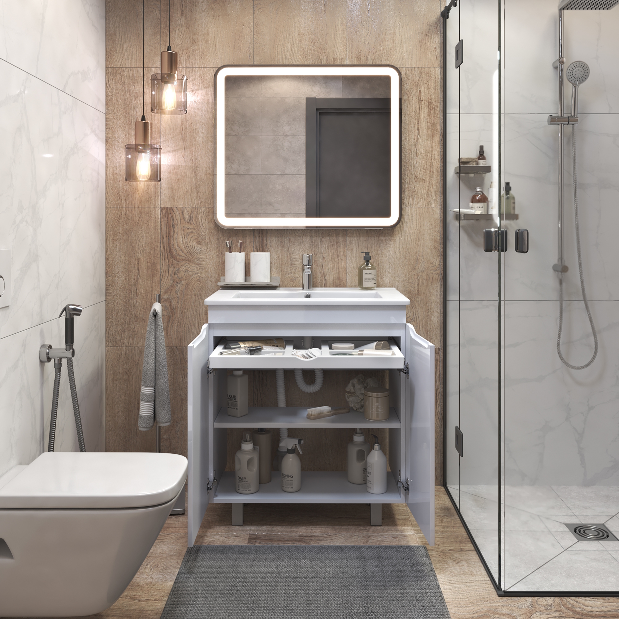 Тумбы Grani оснащены удобным органайзером, который позволяет легко находить и доставать необходимые вещи. Мебель оснащена шариковыми направляющими полного выдвижения, что обеспечивает плавный и бесшумный ход ящика. Еще более комфортное использование мебели делают интегрированные ручки и дверные петли с доводчиком.