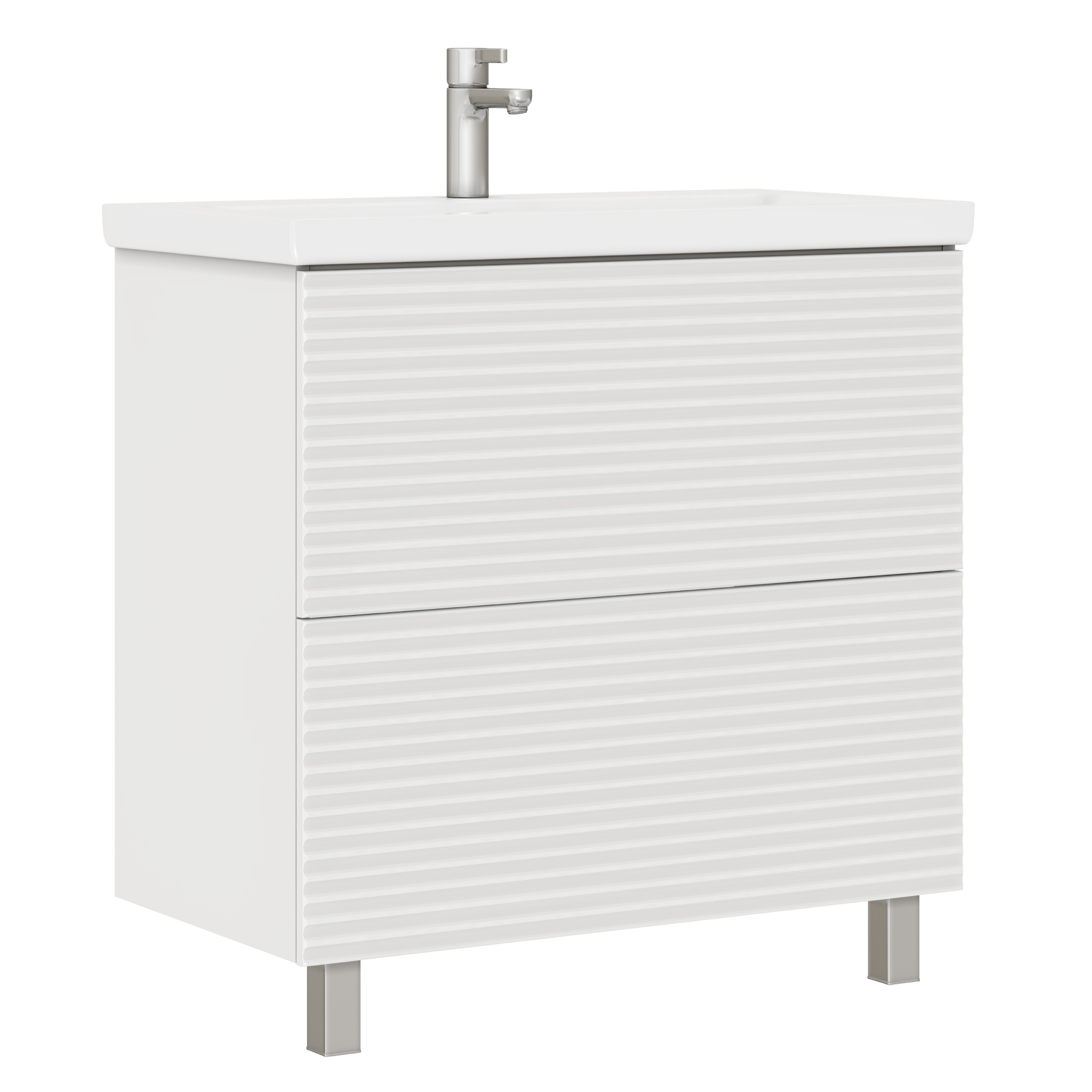 Оснащение: 2 выдвижных ящика, направляющие скрытого монтажа, нажимной механизм открывания, 2 навеса, 2 опоры квадратные регулируемые, 1 сифон