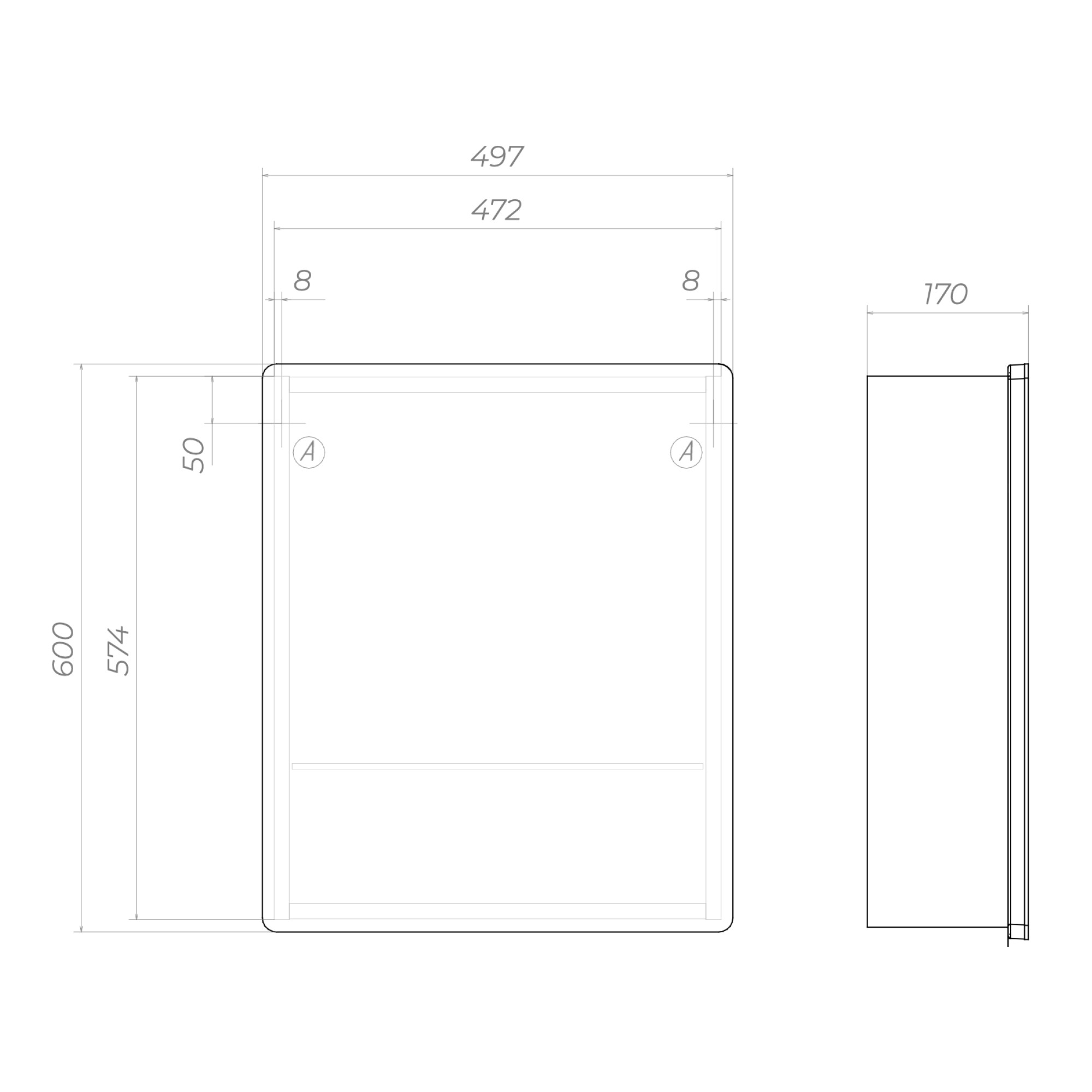 | Размер: | 497⨉170⨉600 мм (Ш⨉Г⨉В) |
